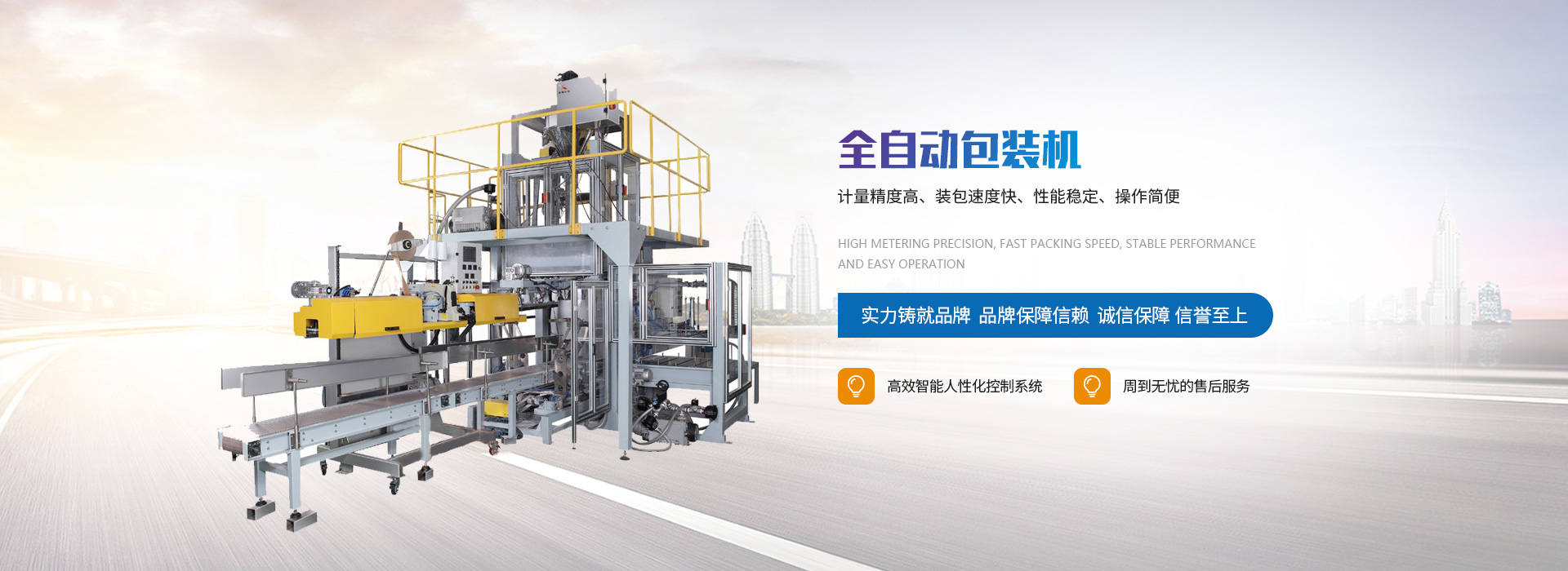 公司堅持以質量求生存,以服務求發展,始終以重合同、守信用為宗旨,提供省人,穩定、高品質的包裝智能線,努力使產品實用、美觀、人性化:穩定、厚實、無人化,為我國和世界的包裝事業做出應有的貢獻。